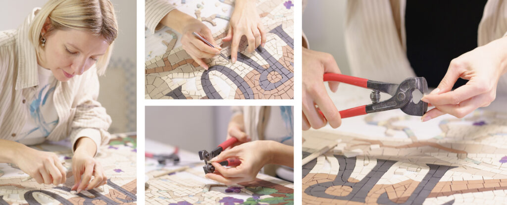 Après 15 ans en tant que styliste de mode, j’ai choisi de me tourner vers la mosaïque, un magnifique terrain d’expression pour allier ma sensibilité esthétique et mon habileté technique.